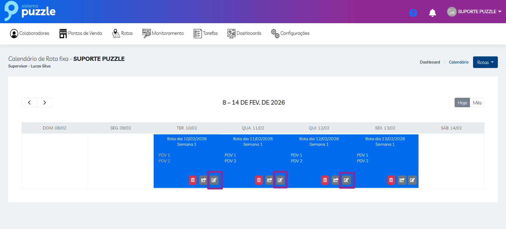 - Dias passados não podem ser alterados, pois já foram finalizados e executados pelo time de campo.