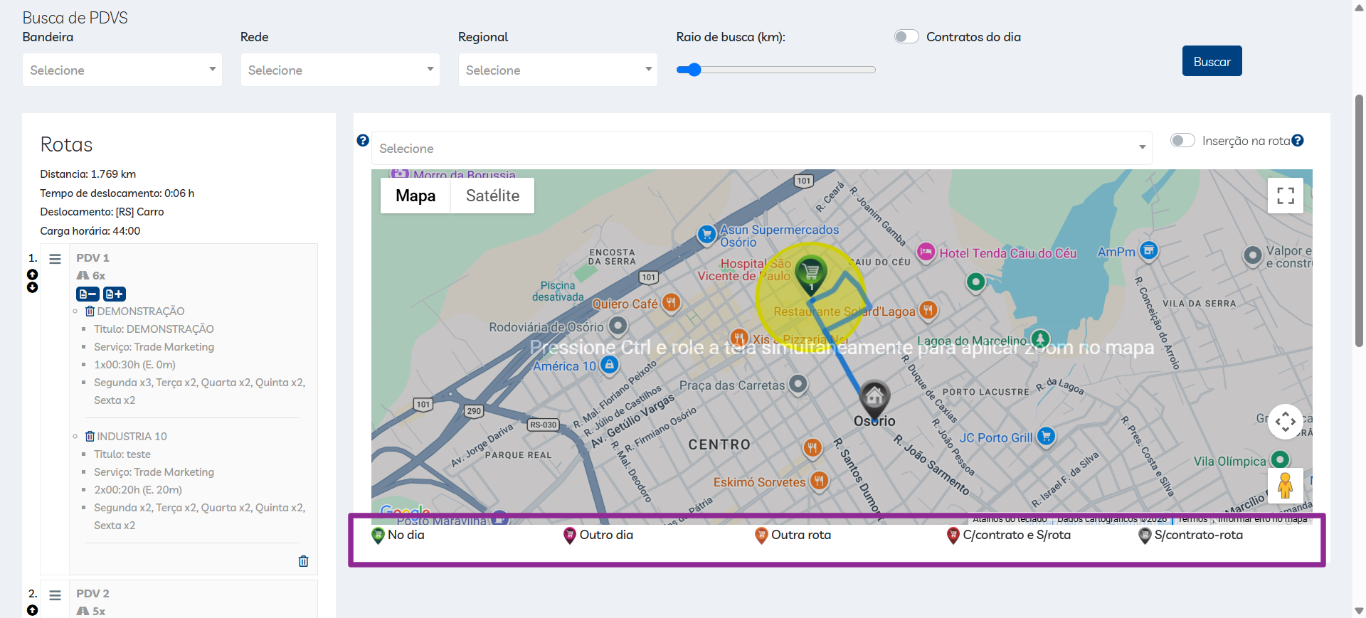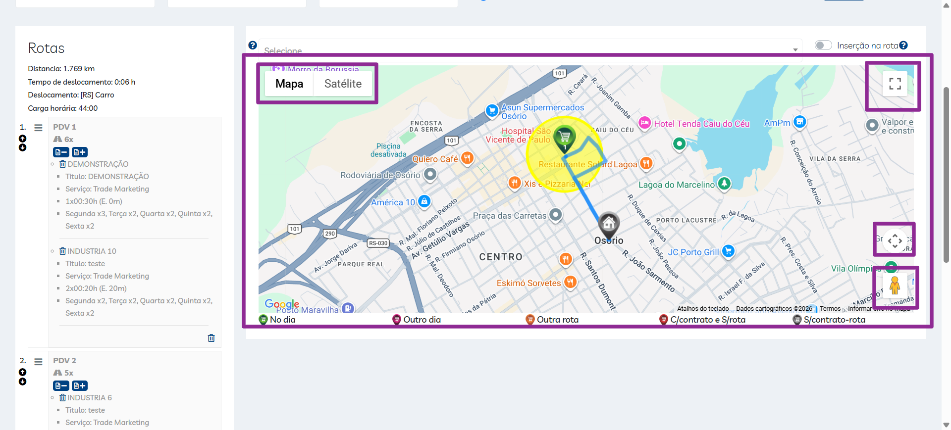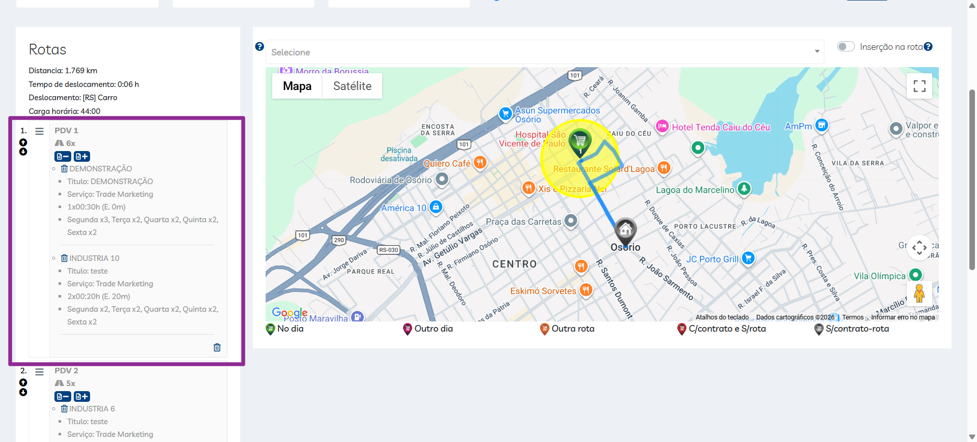 - No dia: PDV em rota no dia atual;