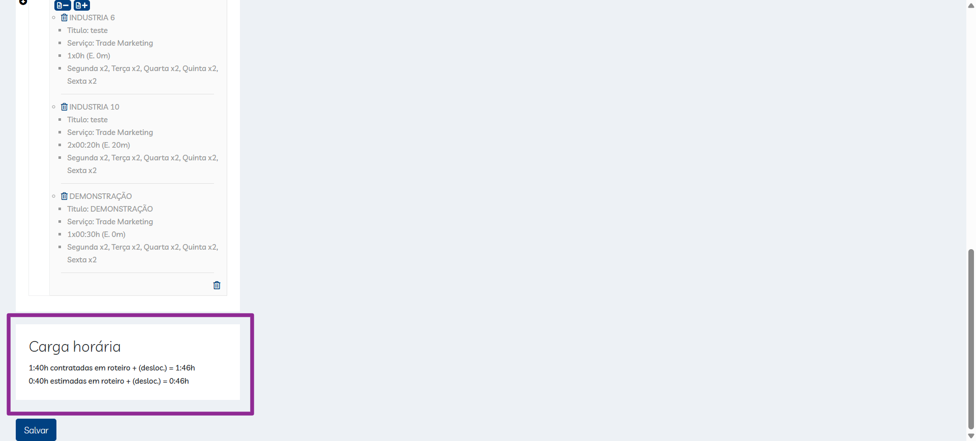 - Ícone de lixeira ao lado da indústria: remove apenas aquele contrato do dia;