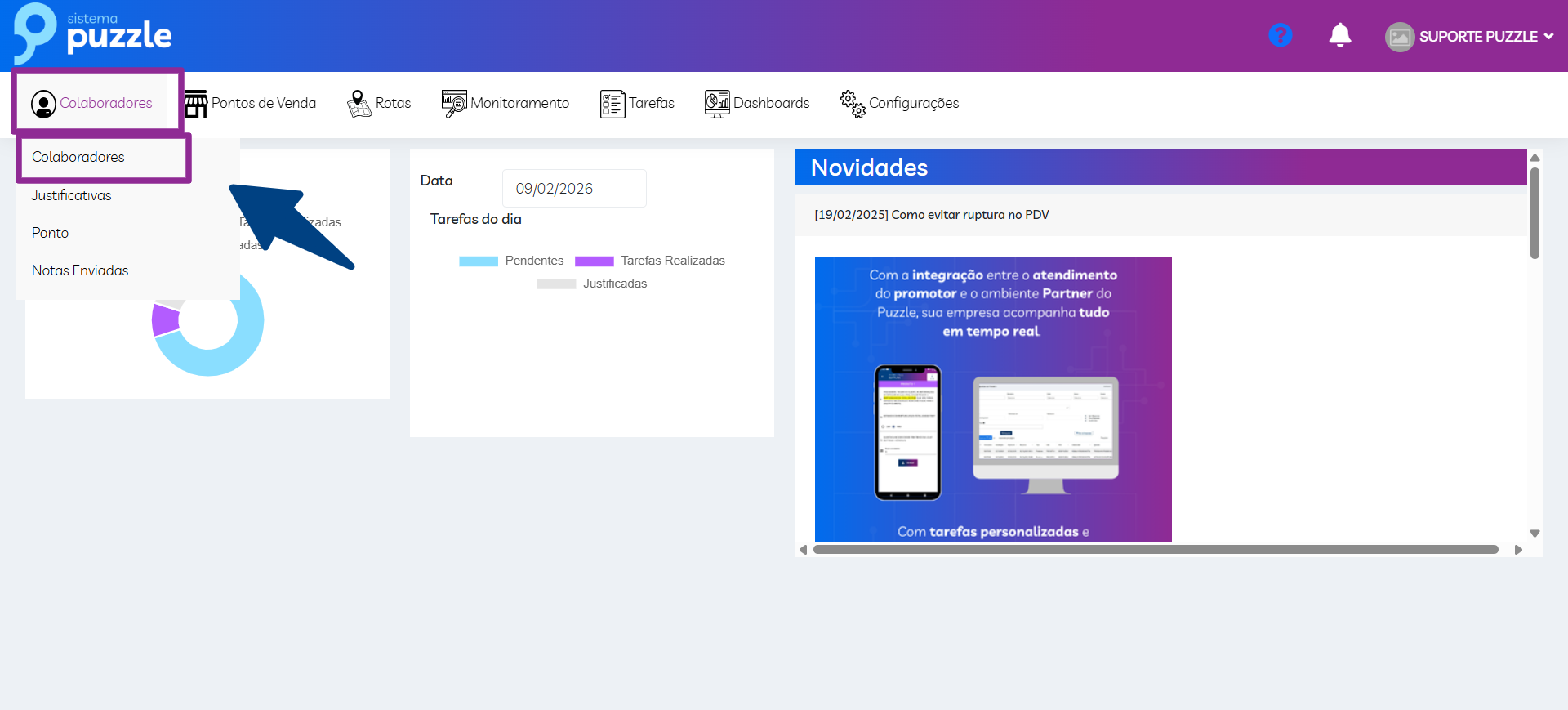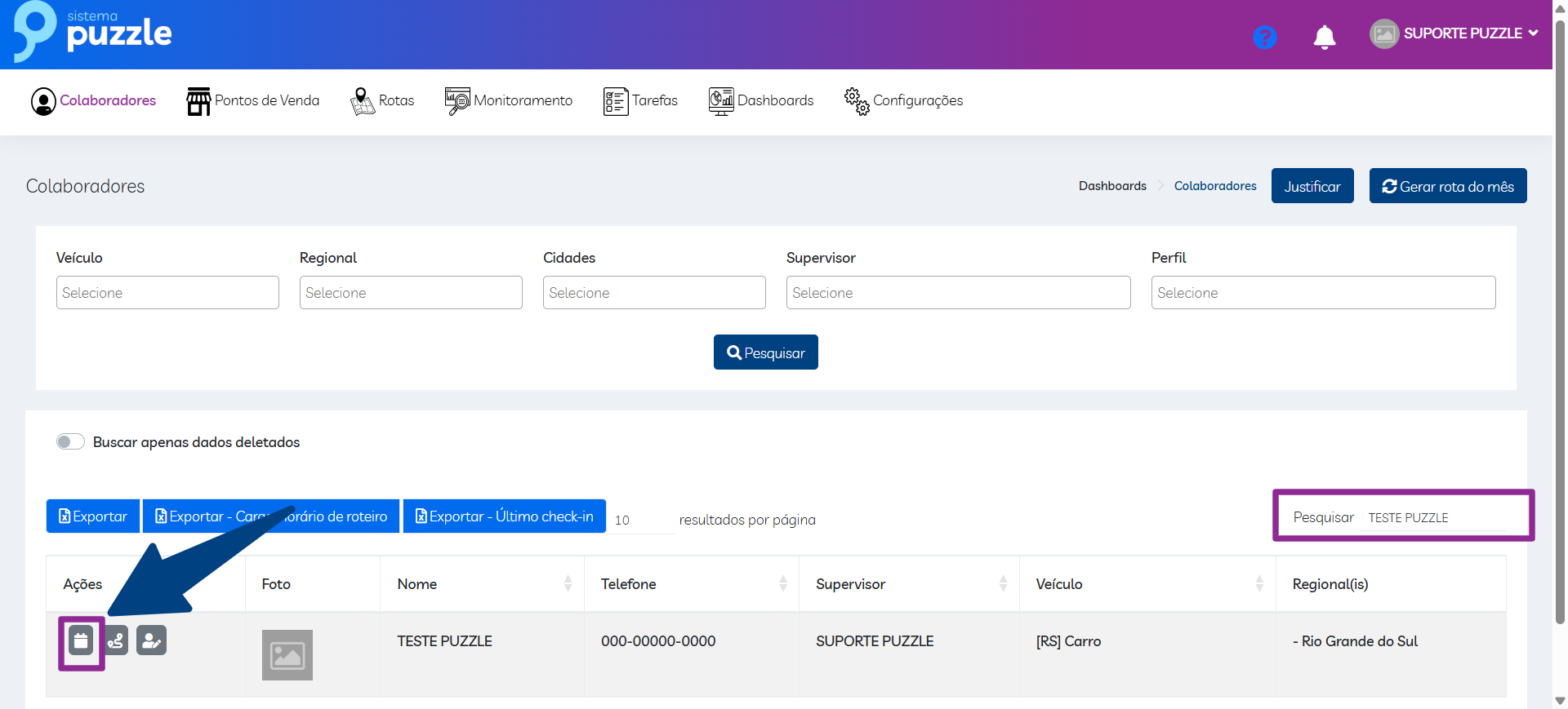 Ao clicar nesse ícone, você será direcionado diretamente para o roteiro agendado do colaborador.