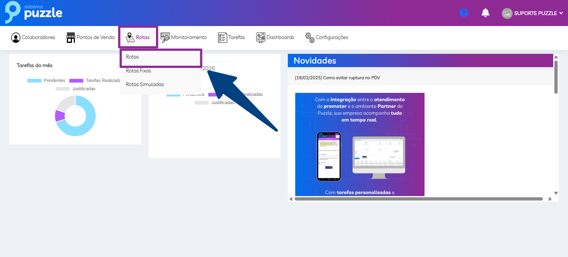 Existem duas formas de acessar o roteiro agendado no sistema: