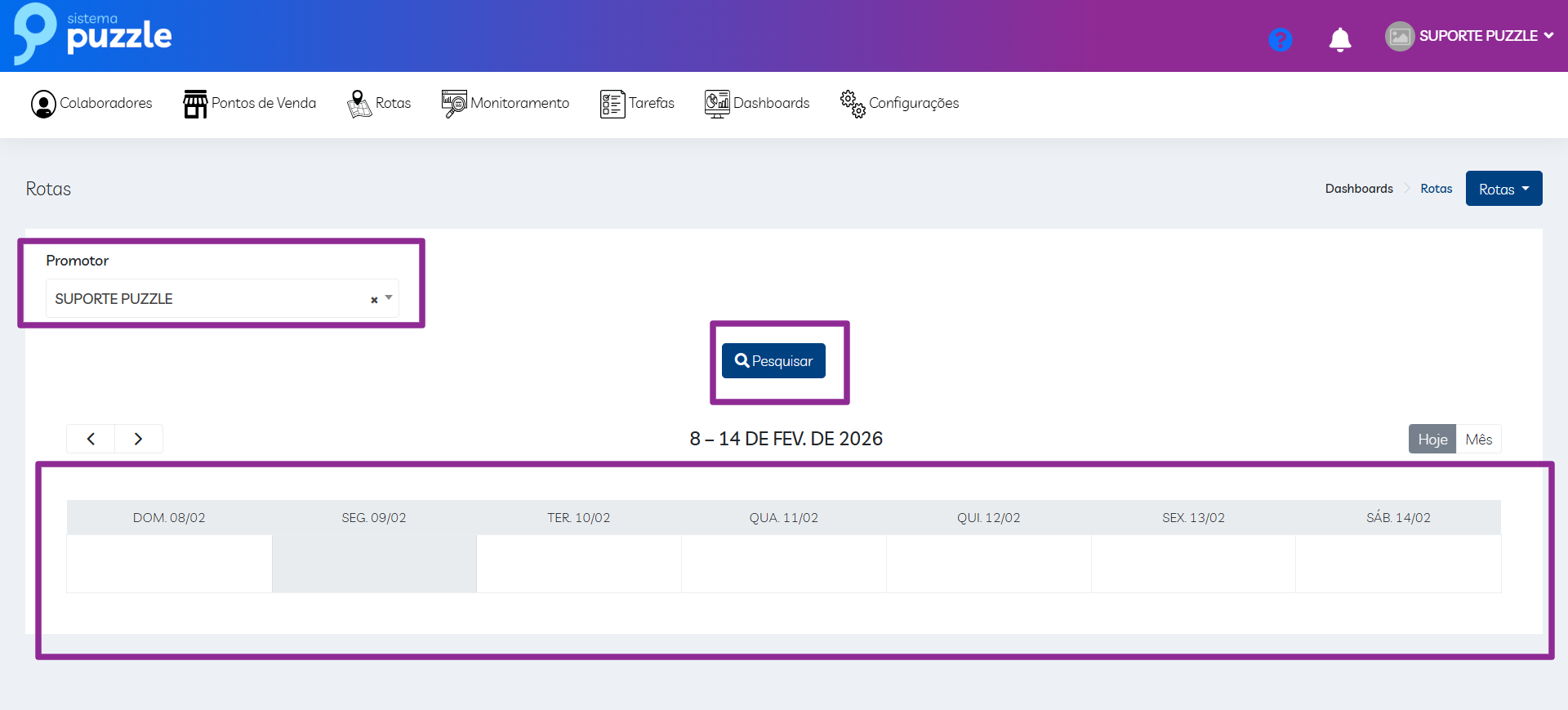 Após a pesquisa, o roteiro agendado do colaborador será exibido automaticamente na tela.