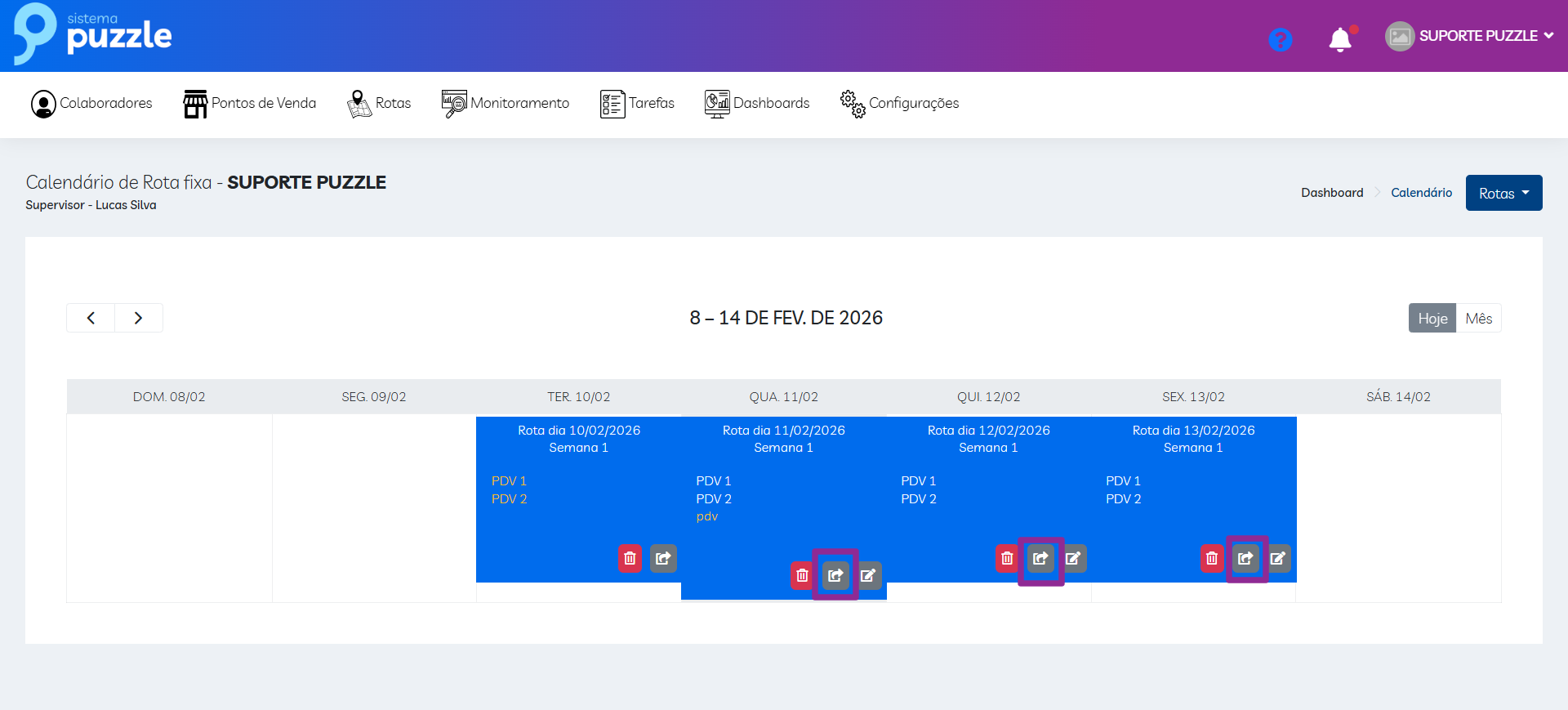 Em algumas situações, a rota agendada de um colaborador pode se repetir em outro dia.
