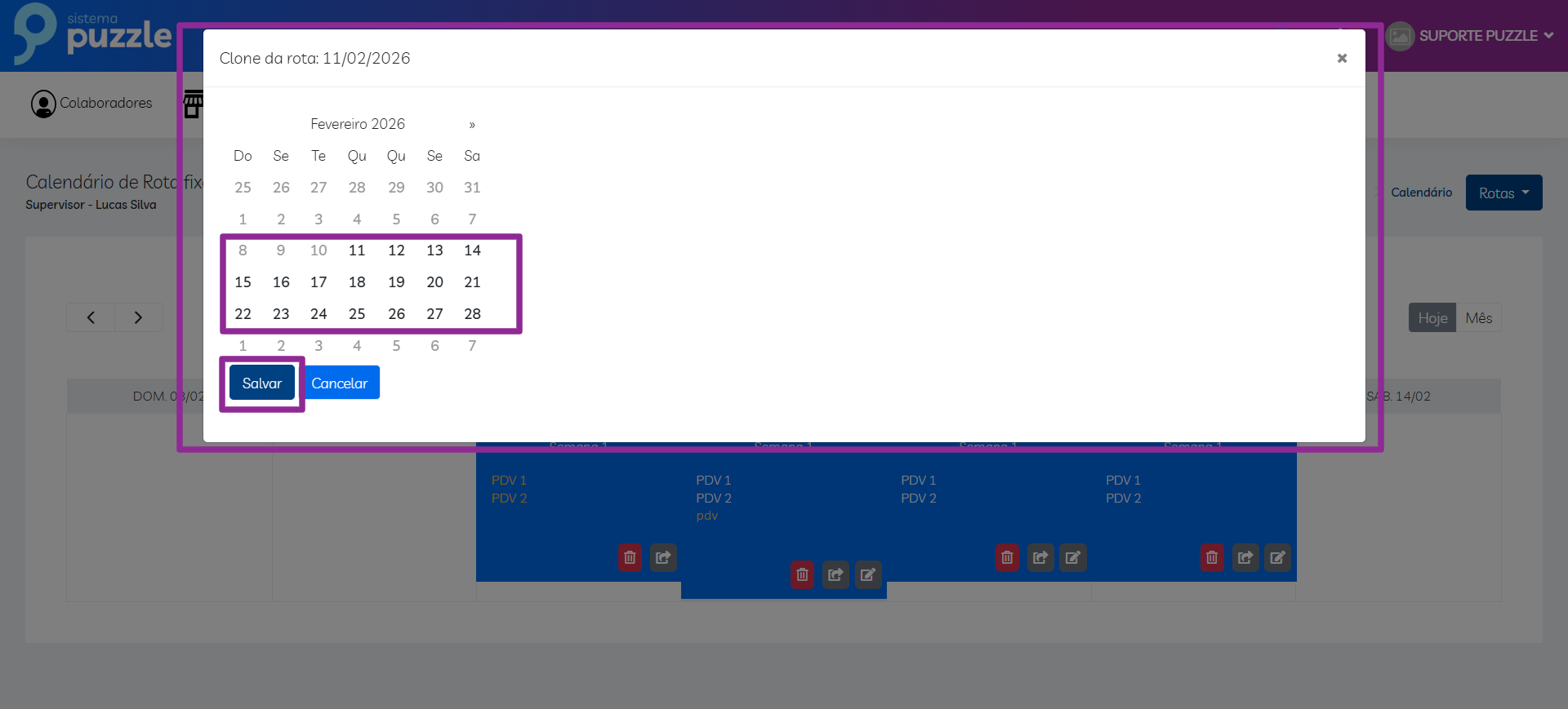 Para evitar o cadastro manual de todos os PDVs novamente, o sistema permite replicar (clonar) a rota agendada.