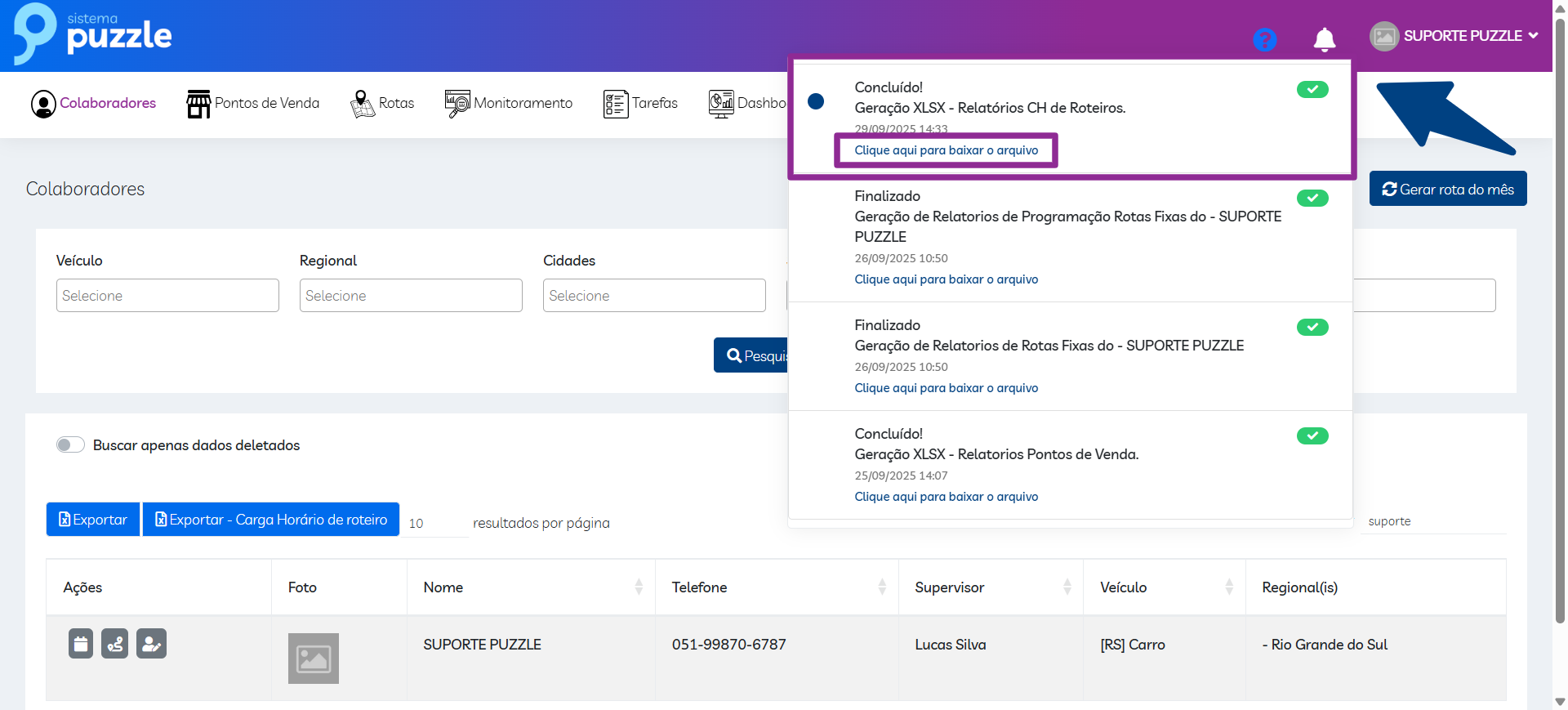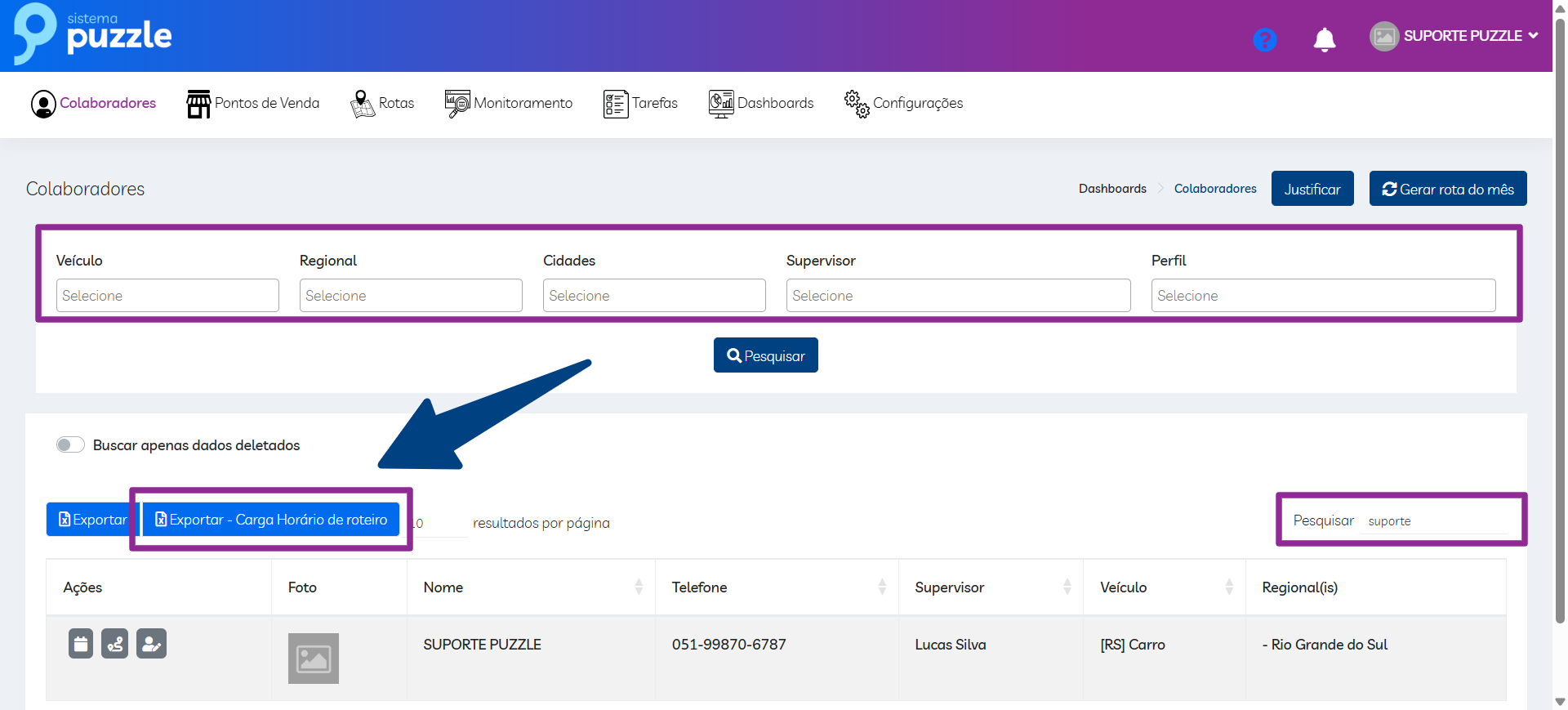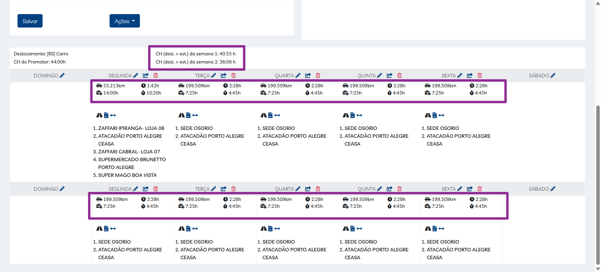 Carga horária de Roteiro Fixo.