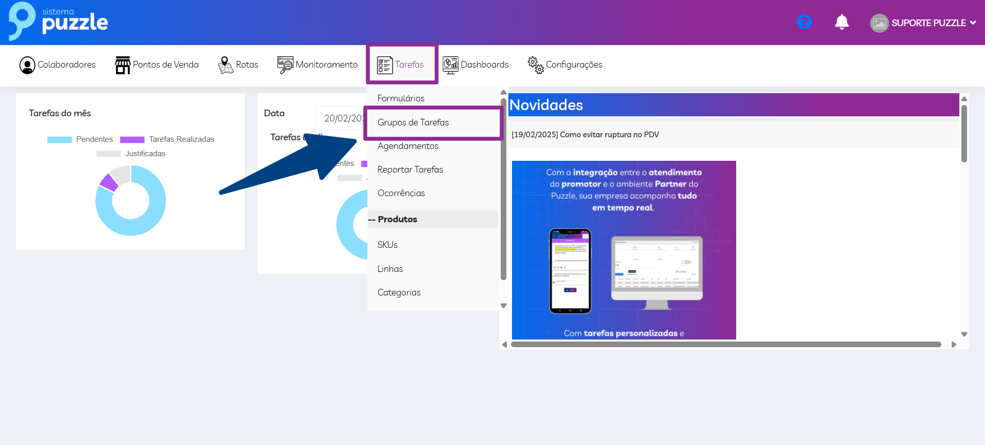 Clique em Tarefas;
