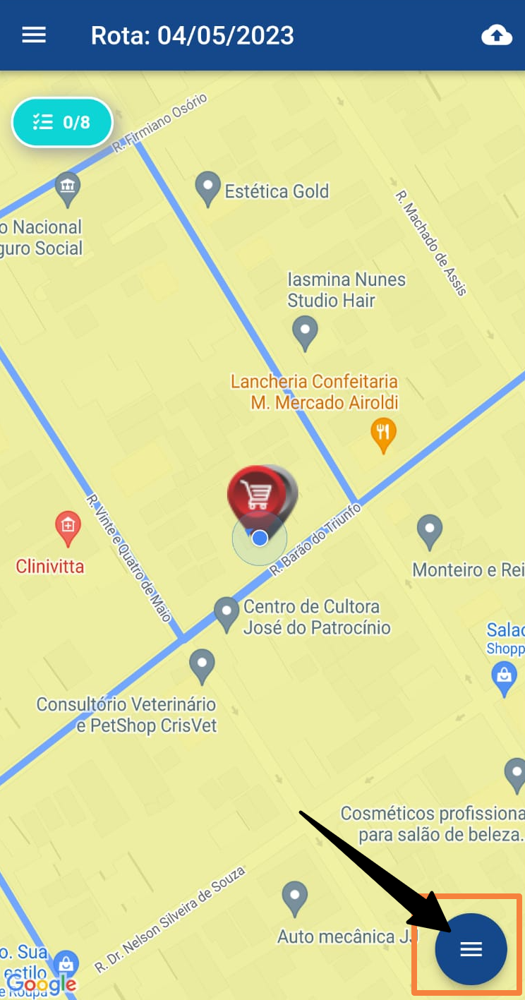 Quando se está na tela do mapa também é possível finalizar a rota, basta seguir o passo a passo abaixo:
