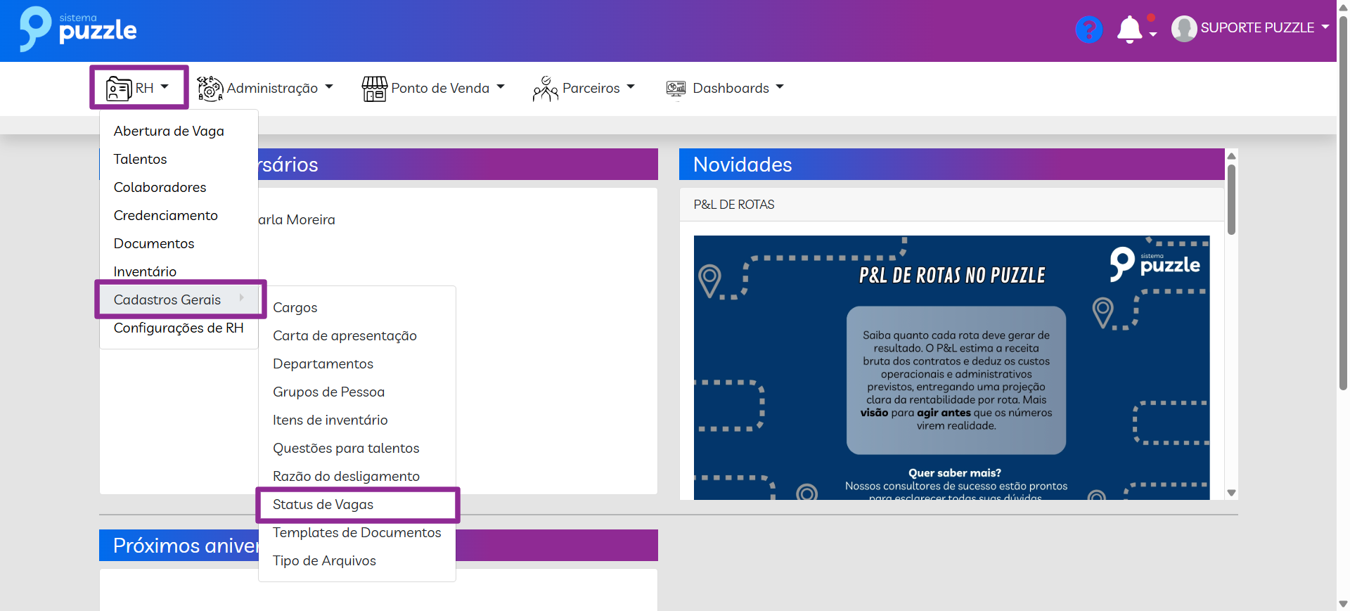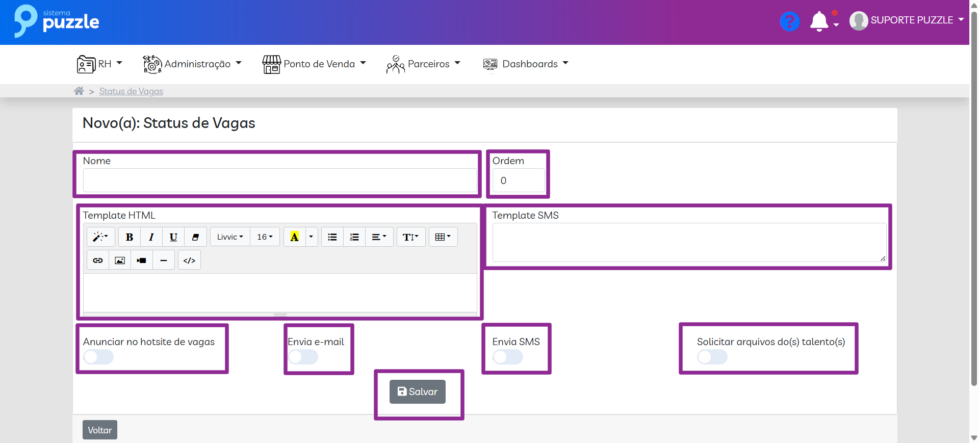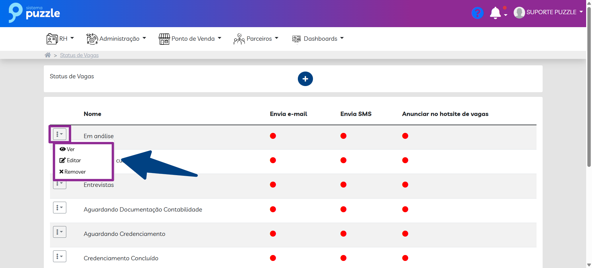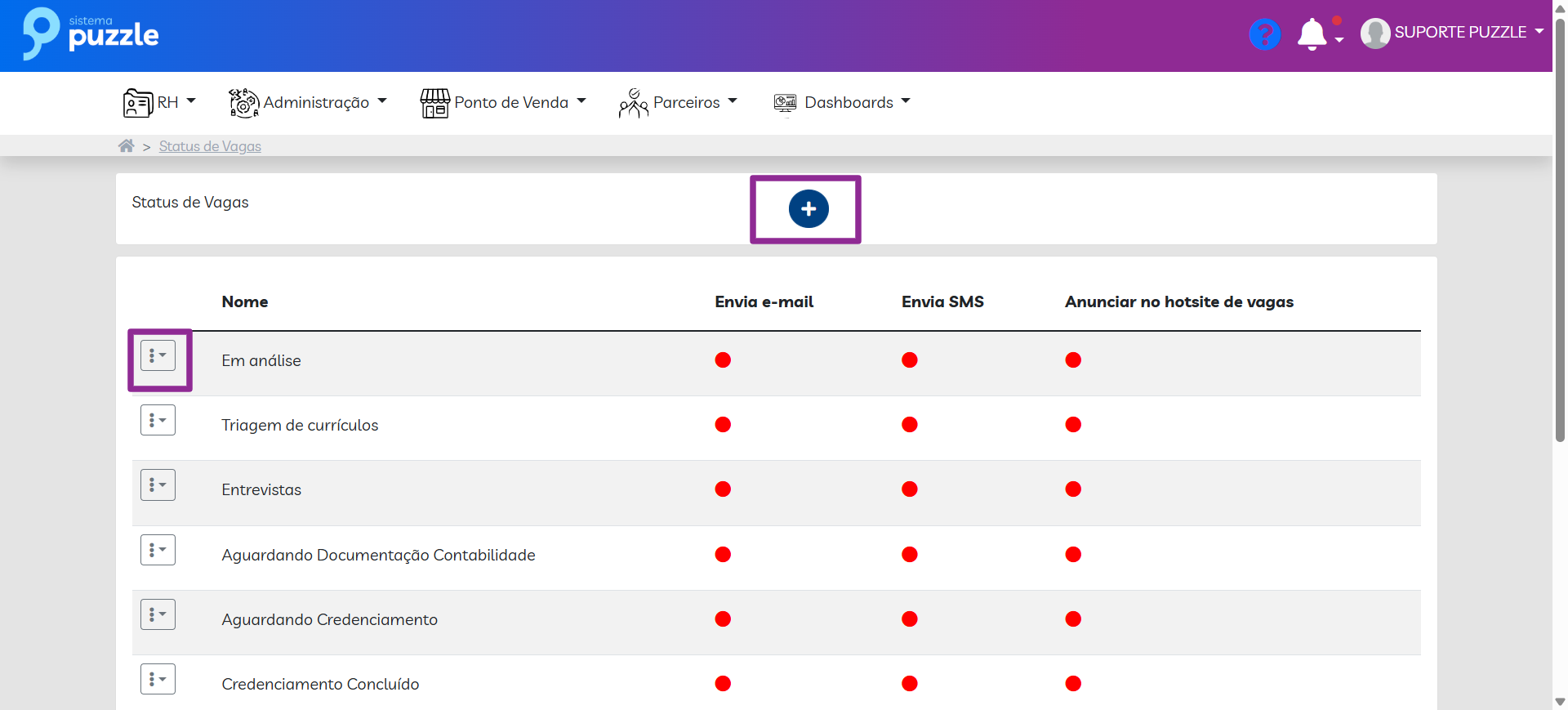 Status da Vaga