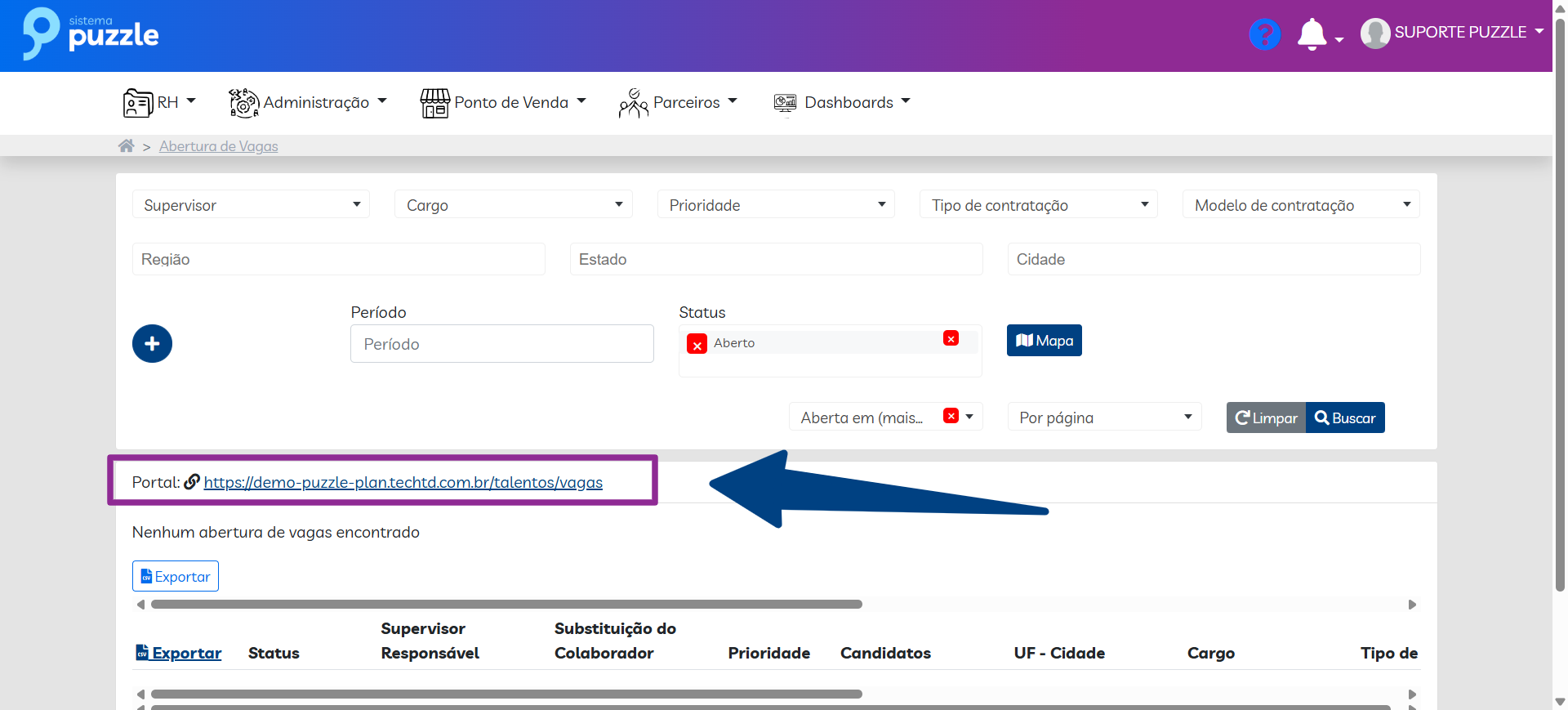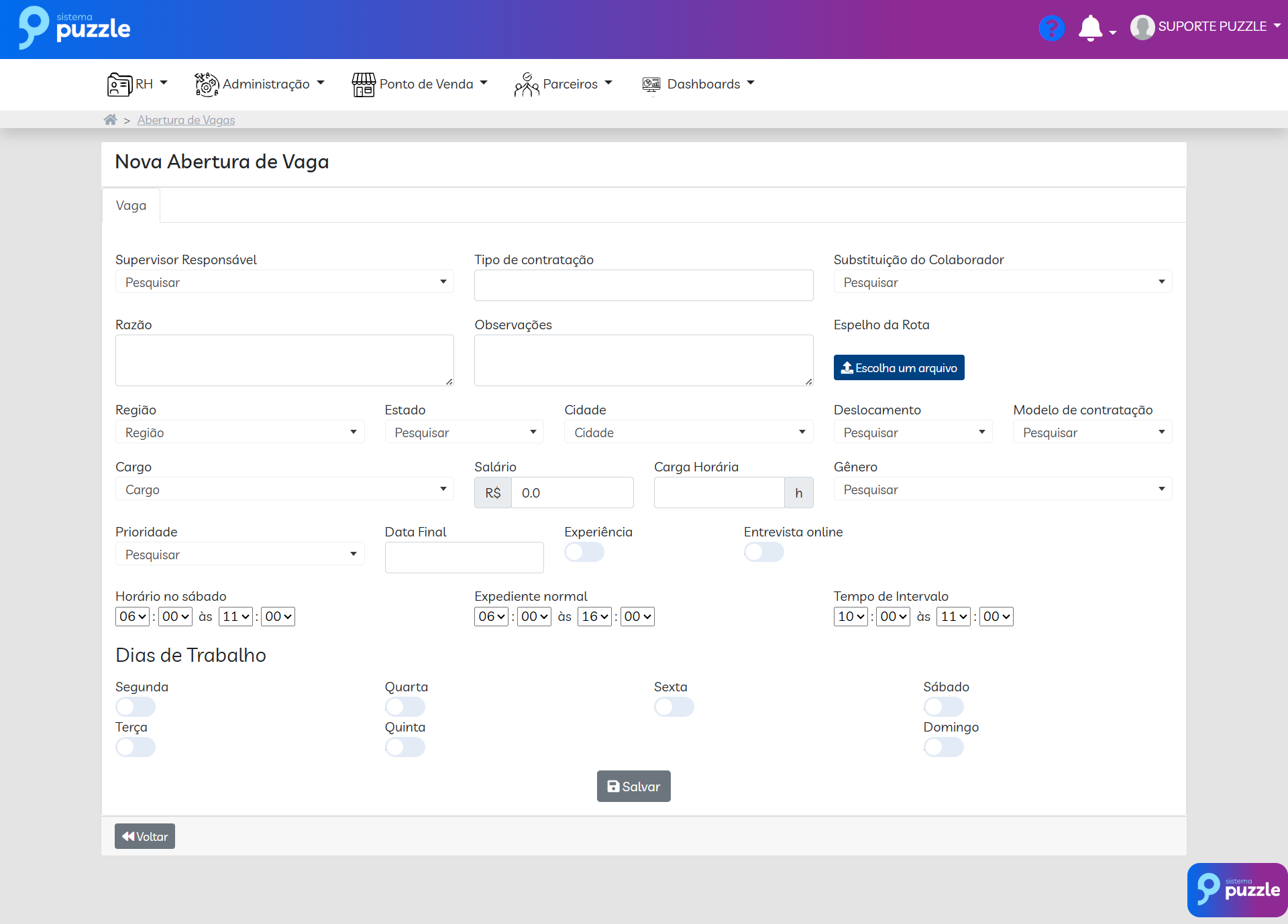 Este manual tem como objetivo orientar o processo de abertura de vagas dentro do sistema Puzzle, garantindo que as informações necessárias sejam corretamente preenchidas e agilizando o processo de contratação.