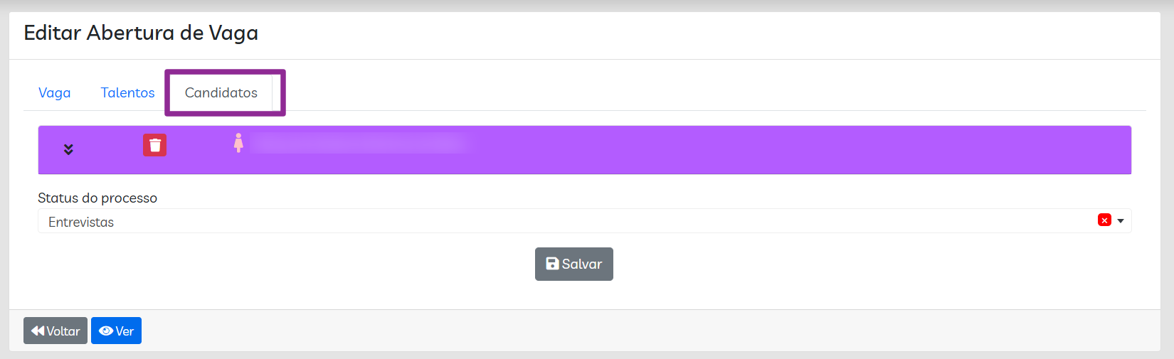 - Acompanhar os candidatos que foram selecionados para a vaga (na aba talentos).